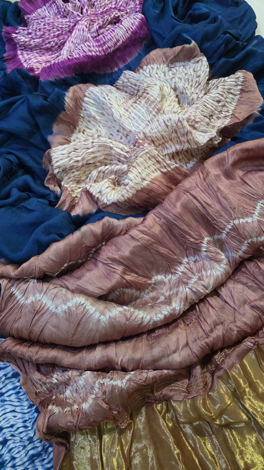 Brown Pure Dola silk Bandhej Saree