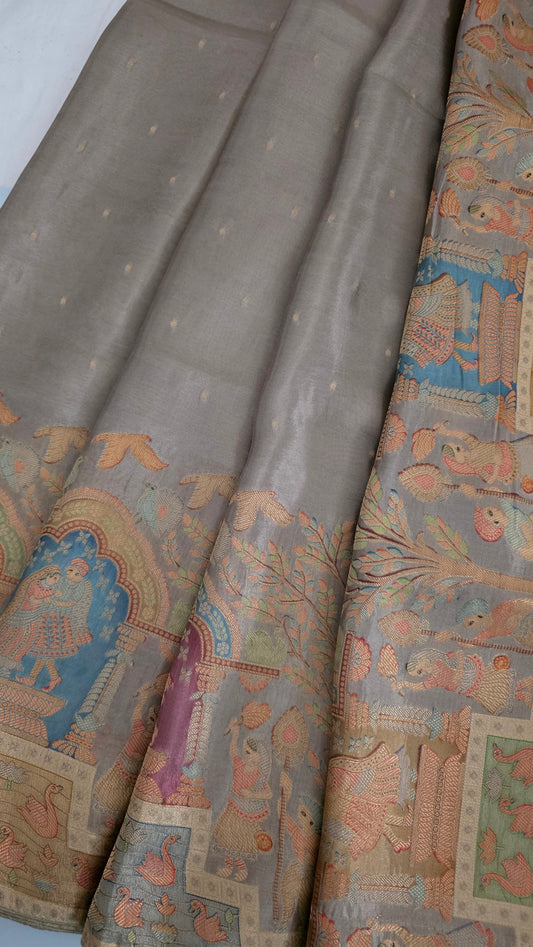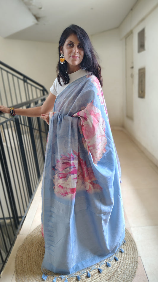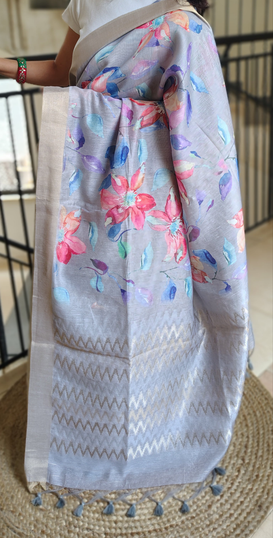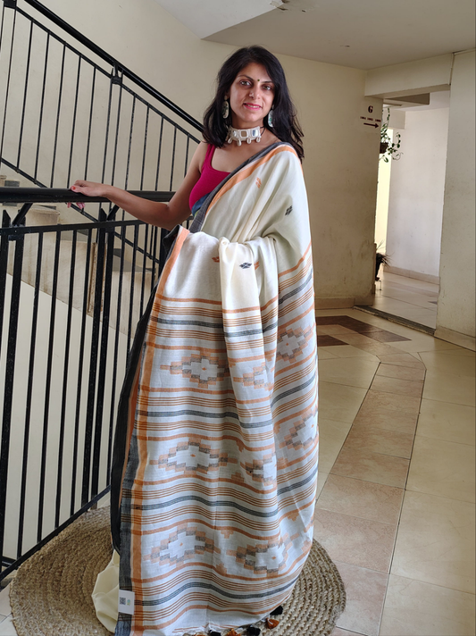 Off white Pure handwoven two toned Khadi Cotton Saree