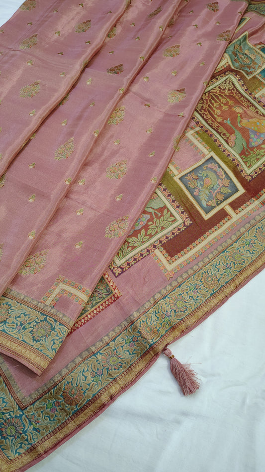 Pink Banarasi Tissue Silk Saree| Figure Weaves