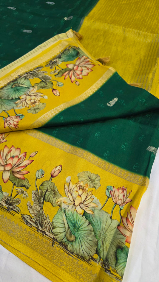 Yellow green Dola silk figure Saree