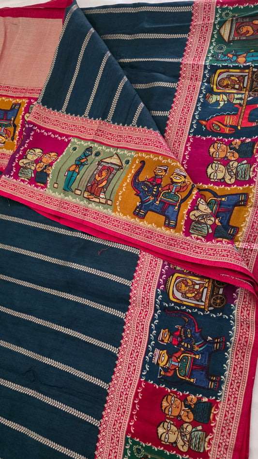 Teal blue Dola silk figure Saree