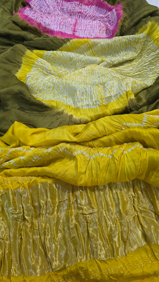 Yellow Green Pure Dola silk Bandhej Saree