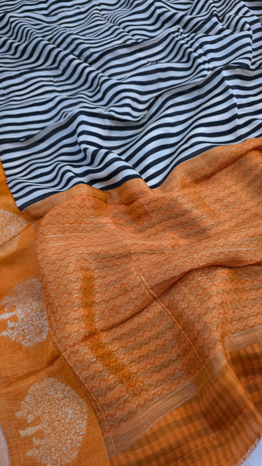 Black and white stripes Mashru silk saree