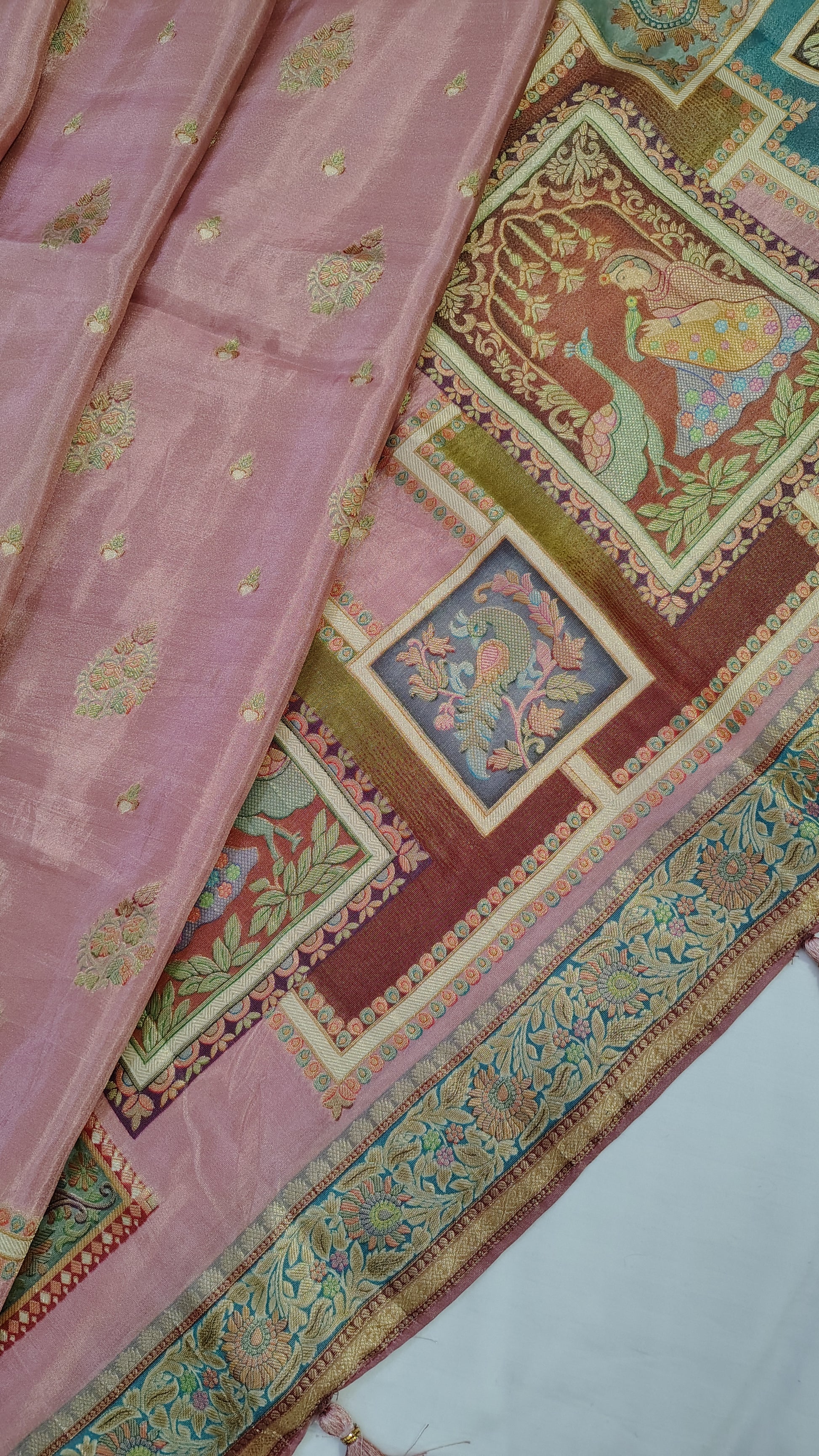 Pink Banarasi Tissue Silk Saree| Figure Weaves