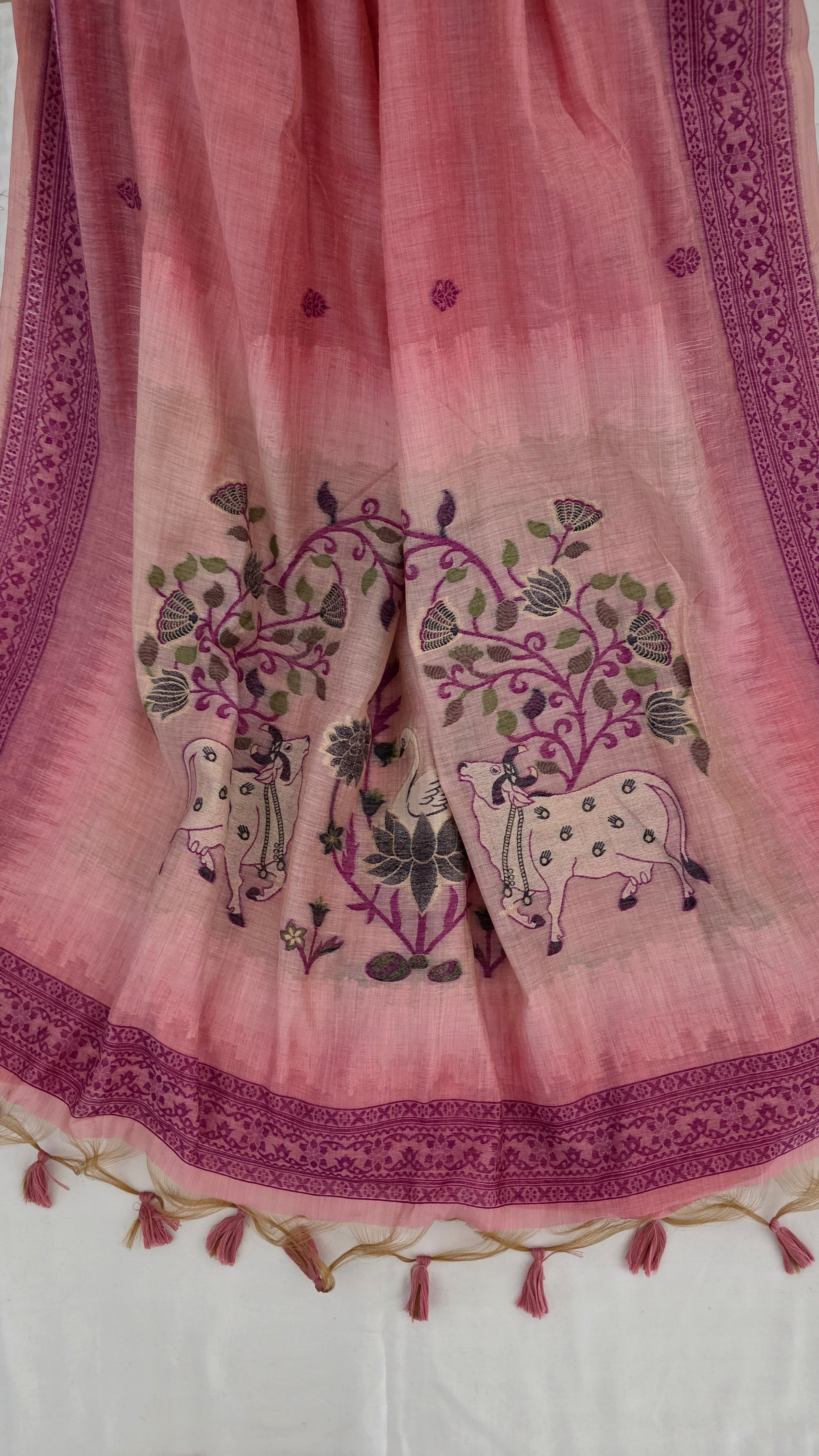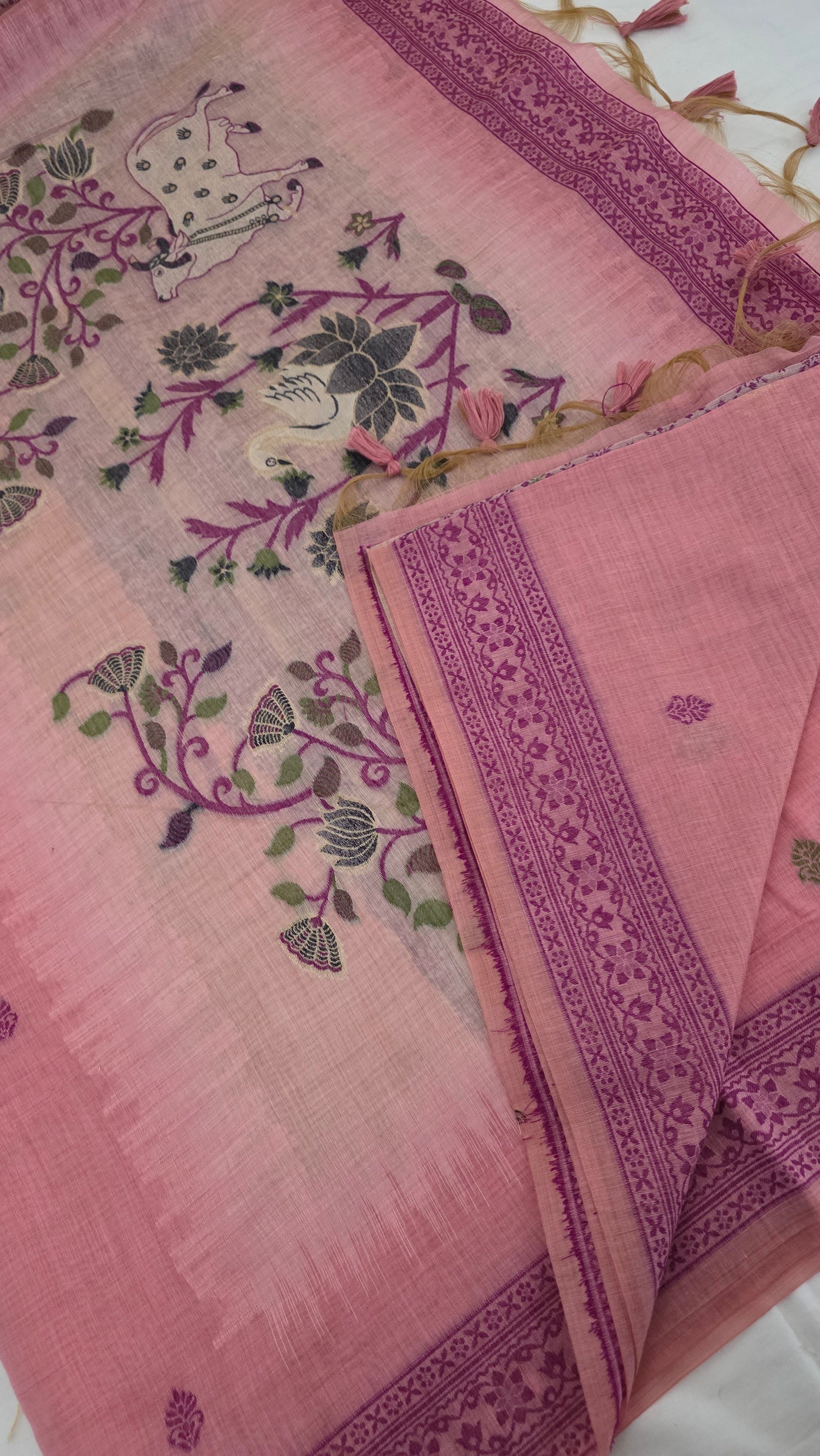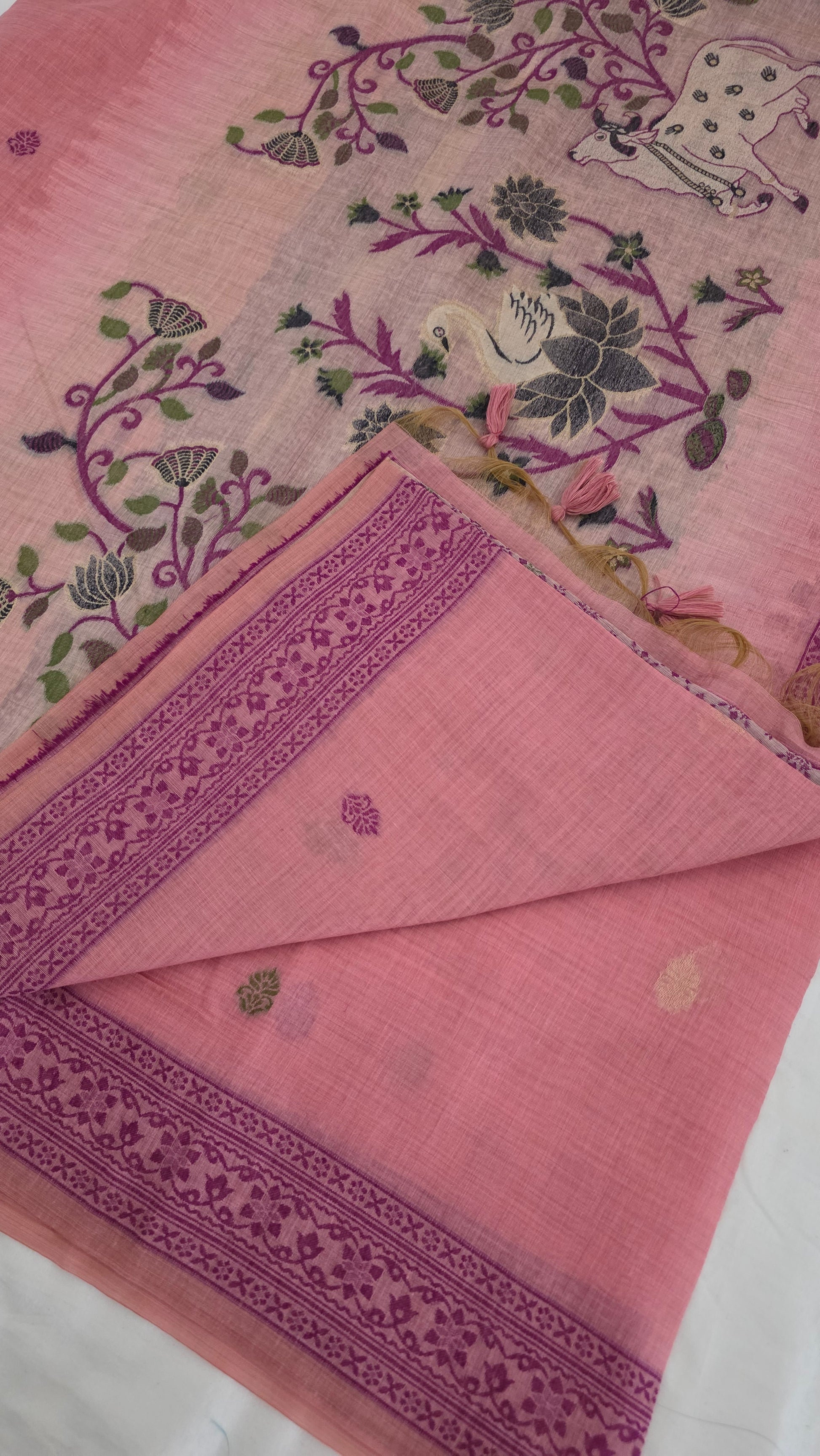 Pink Pichwai Munga Silk Jamdani