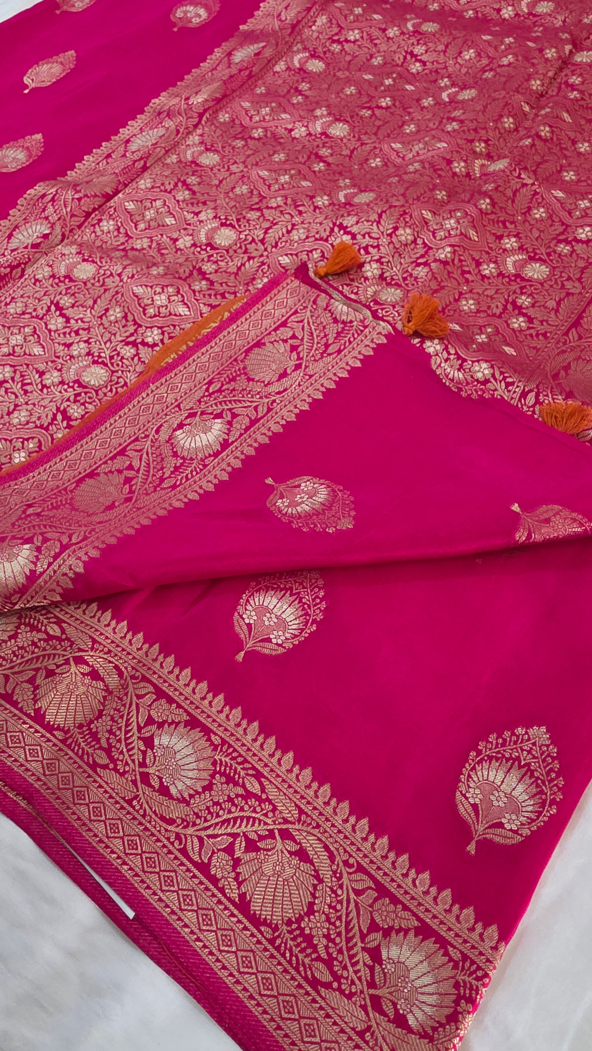Introducing our pink Semi Mysore Silk Saree, made with high-quality semi Mysore silk. The pastel blue color adds a touch of elegance, while the soft and lightweight fabric provides comfort for occasional wear.