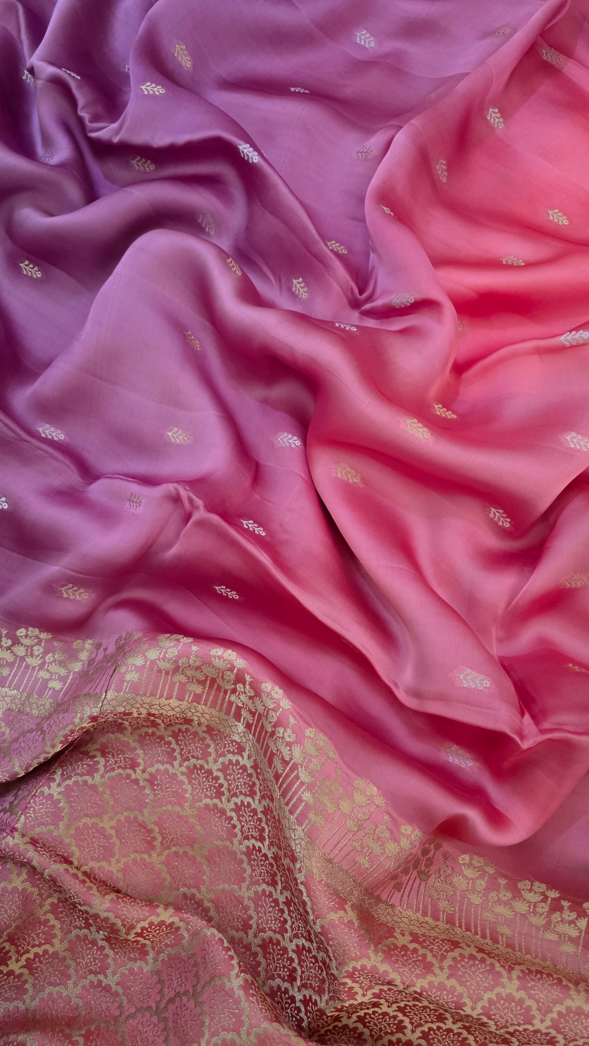 Shaded pink/ Lavender Satin Silk Saree