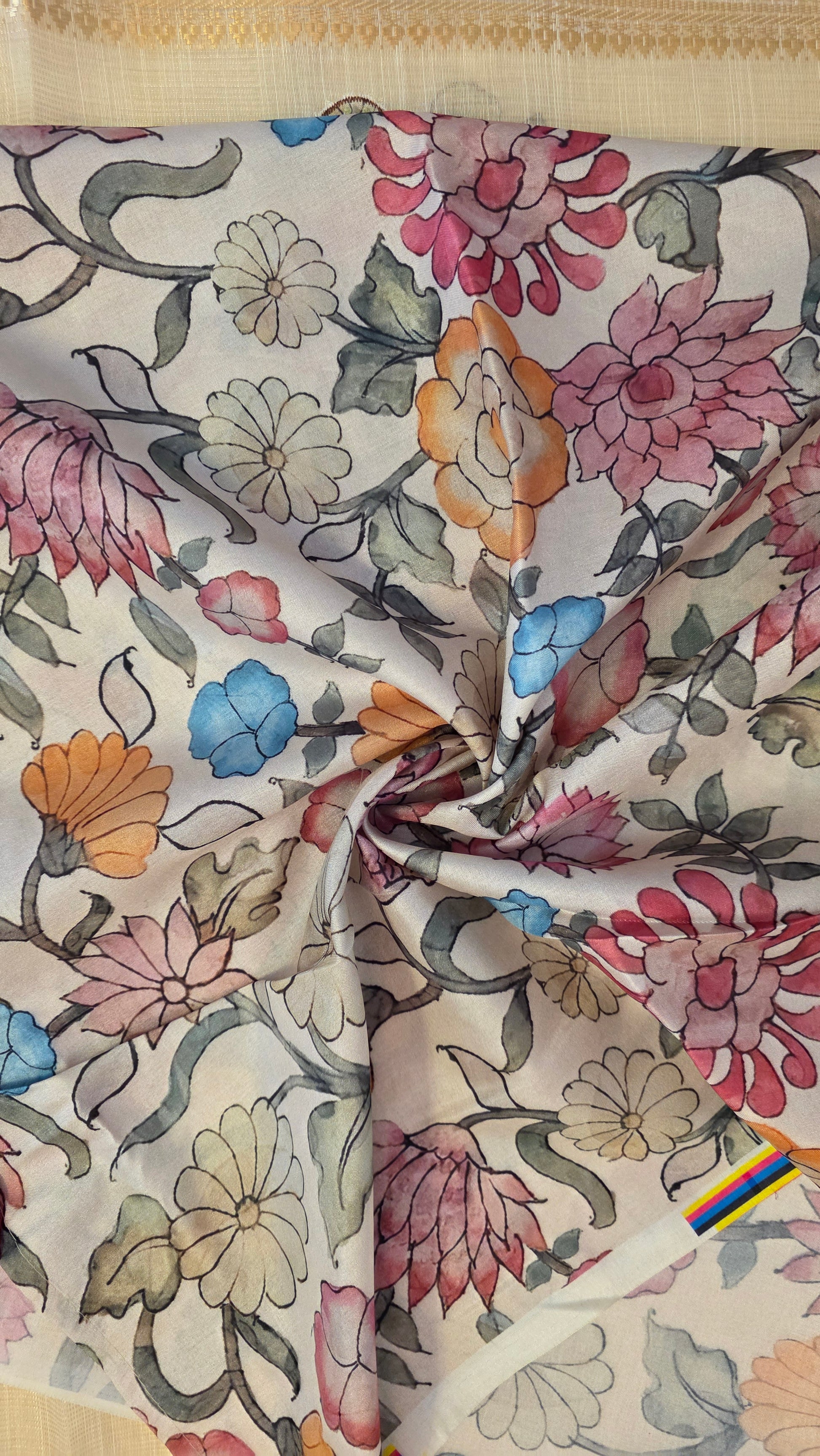 Ivory Linen silk Kalamkari applique | Saree