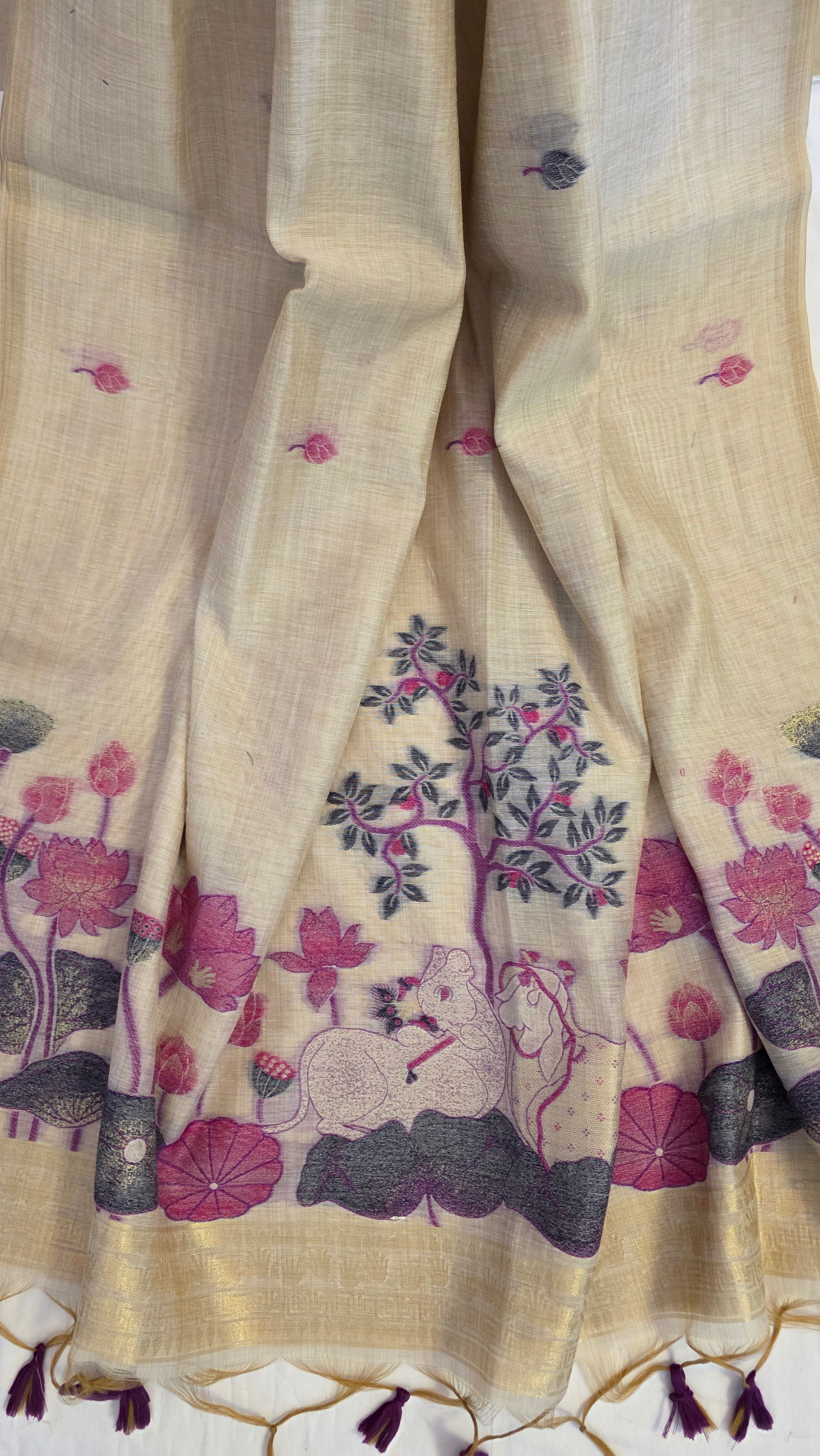Pichwai Munga Silk Jamdani