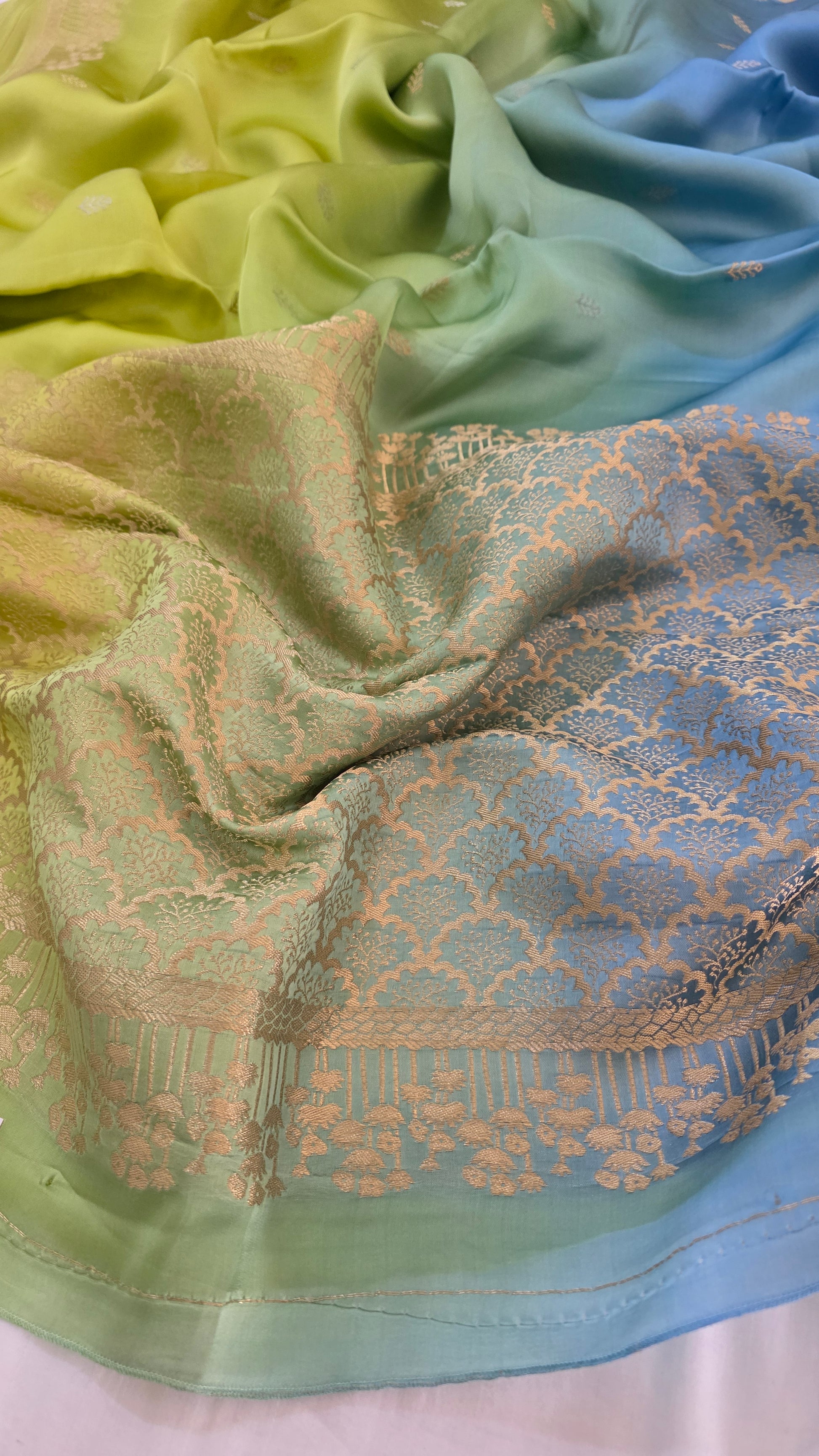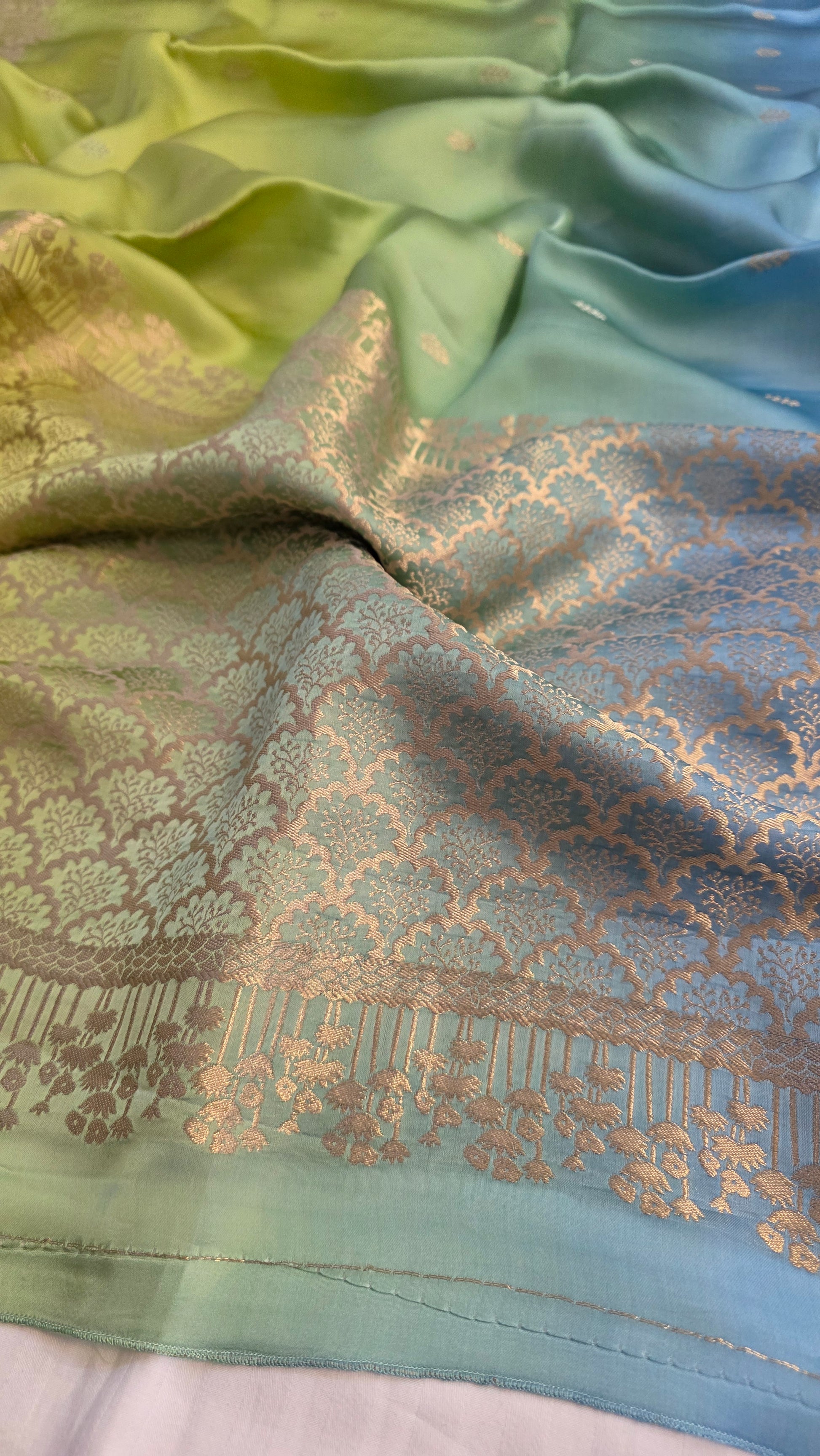 Shaded Blue/ Green Satin Silk Saree